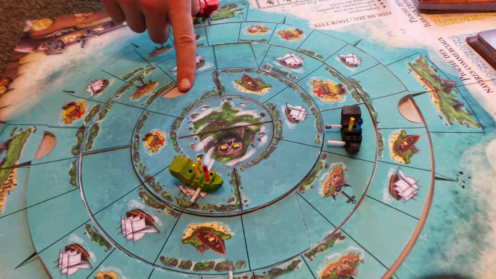 Players can use the strong ocean currents of the archipelago (two circles on the board can be moved) to move faster, or to protect themselves from other players. The loot is not safe in their ship's hold and has to be transfered on their own island to be secured.
