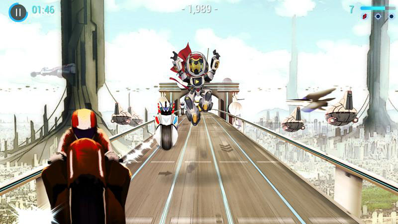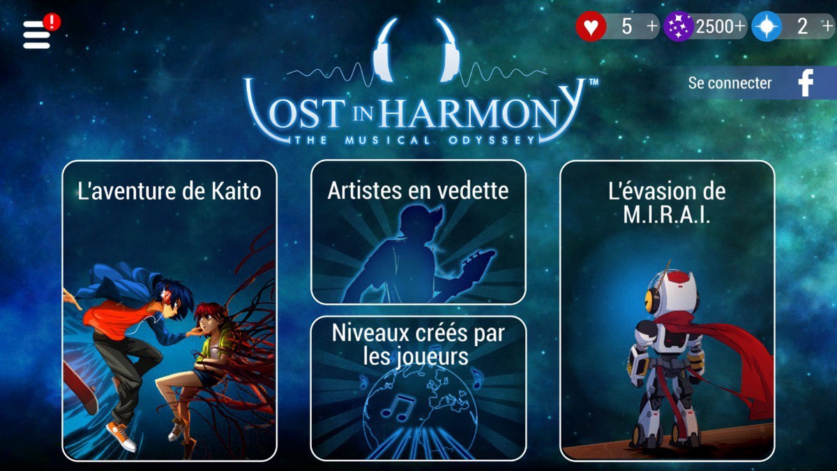 Lost in Harmony is a musical runner available on IOS and Android, in which you control Kaito, a young teenager whose friend Aya is dealing with a serious illness. You'll have to progress through different levels (dreams in which Kaito rides a skateboard with Aya) by avoiding different types of obstacles and tap stars to the rhythm of the music.
