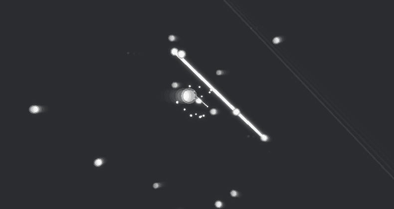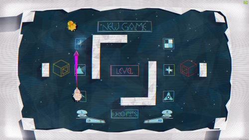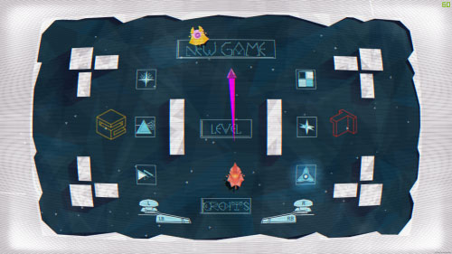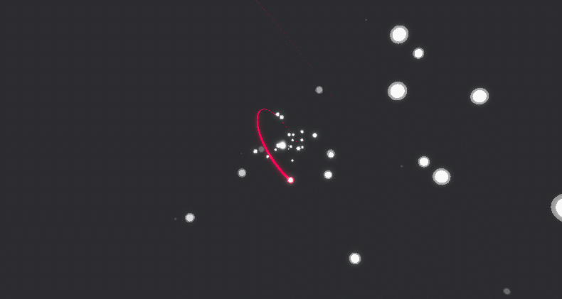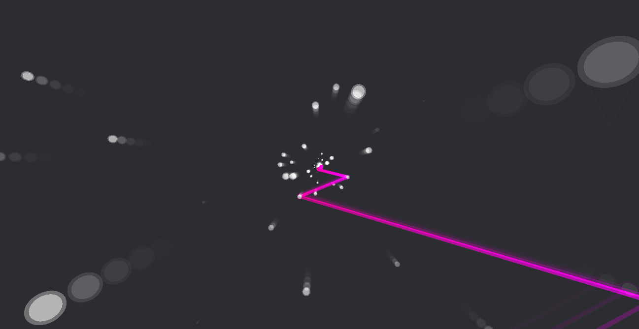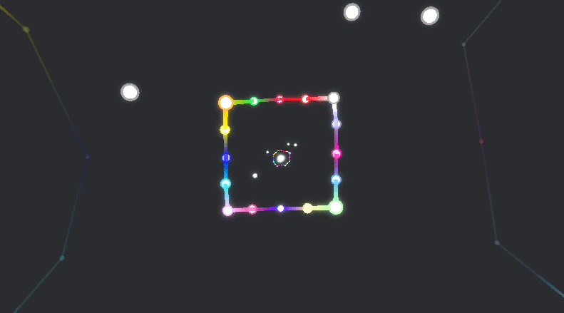 Unbound Atlas doesn’t have any objective, nor any defeat condition: the player is free to wander and experiment in the game without any restriction or orientation. The universe is infinite and repeats itself in the same way as fractals. Players can displace star-looking entities and link them together with strings. Different arrangements and links result in different visual and musical outcomes.